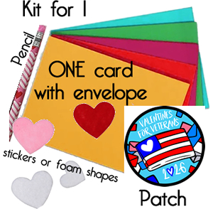 ITEMS IN THE KITValentines for Veterans PATCH-dated 2026 Valentine Pencil Valentine foam shapes and OR stickers Valentine card and envelope to decorate (color of card will vary)