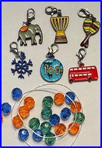 Kit for 1 includes: (charms included represent the world centers scouts can visit around the world)(6) charms with hooks (Globe 100 year (in glitter gold), drum (Africa), snowflake and double decker bus (Europe), maracas (North America-mexico), and elephant (Asia). 20 + beads elastic string All inside a plastic bag