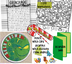Grinch Stealing Christmas-KIT*** Patch Grinch official pencil and paper Merry Grinchmas holder and bookmark Green paper accordion booklet Fun activity sheet coloring sheet for the theme Several Holiday stickers and foam shapes to place in your booklet