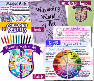 • 12 Colored pencils (design sticker with wizard names for colors)