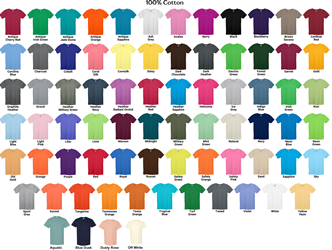 When purchasing t-shirts for your silk screen designs. We have the below color choices. PDF of the color choices for shirts Adult sizes on page 1 (Youth sizes on page 2)Contact: mailto:orders@patchworkdesigns.net Please contact us for pricing for silkscreening, plain items, or other color choices you may need. (sweatshirts, long sleeves, tye-dye and more are available)