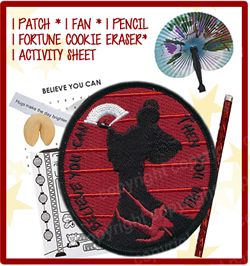 Included in the Believe you can and then you will (KIT FOR 1)(1) Believe you can patches (1) Metallic or holographic Pencils (1) Fortune cookie Erasers (1) Movie inspired custom stickers (1) Floral fans (2) Activity sheets (themed to the patch)