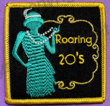 Item Detail: 2.75 inch patch with gold metallic threads.Step into the times of flappers, feathers, glitz, glam, pearls, jazz, and parties. We do not offer a kit for this patch. 20's PATCH PROGRAM-- (There are no activity sheets for this patch) 1. Learn about the fashion in the 20's. Long pearls, fringe dresses, and more. 4. Get your groove on with some tunes from the 20’s. 5. Learn about common products found in homes in the 20’s. Examples: phonographs, radios, art deco designs, and telephones. 6. Check out the hairstyles and cosmetics of the 20's. (short hair with finger waves). 7. Learn about foods from the 20's OR design a cool label for one of items. Pineapple Upside Down Cake,deviled eggs, baby Ruth candy bar, Bit 0 honey etc. 8. Learn about games and toys of the 20’s included marbles, jacks, paddleball, backgammon, parcheesi, doll houses, dolls, snakes and ladders board game. 9.Find out how technology has changed since the 20’s or how an item that was great in the 20’s is different today. Washing machines, vacuum cleaner, etc. 10. Learn about accessories from the 20'd. Examples: Cloche hats, headbands, long strands of beads, bangle bracelets, art deco jewelry, etc.